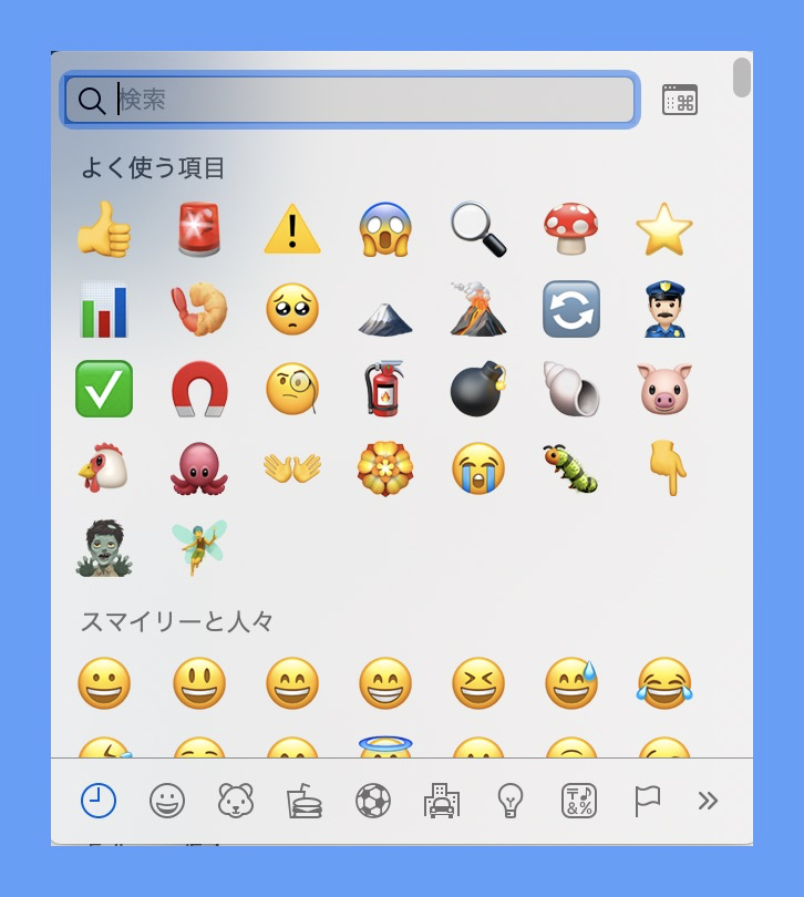 絵文字ピッカーです。絵文字がずらっと出てきて絵文字を入力することが出来ます。