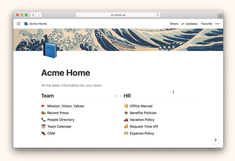 你可以决定把你创建的任意 Notion 页面分享给特定的人、所有团队成员或者整个互联网。下面是关于如何分享的简要概述 🤝